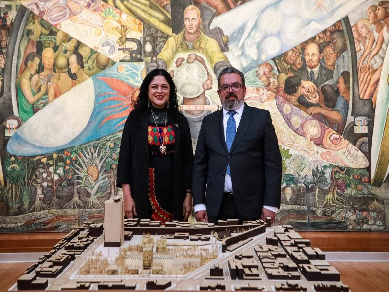 La secretaria de Cultura del Gobierno de México, Alejandra Frausto Guerrero, y el secretario de Infraestructura, Comunicaciones y Transportes (SICT), Jorge Nuño Lara, sostuvieron una reunión de seguimiento sobre los trabajos que se realizan en torno al Centro SCOP, afectado por los sismos de 1985 y 2017.